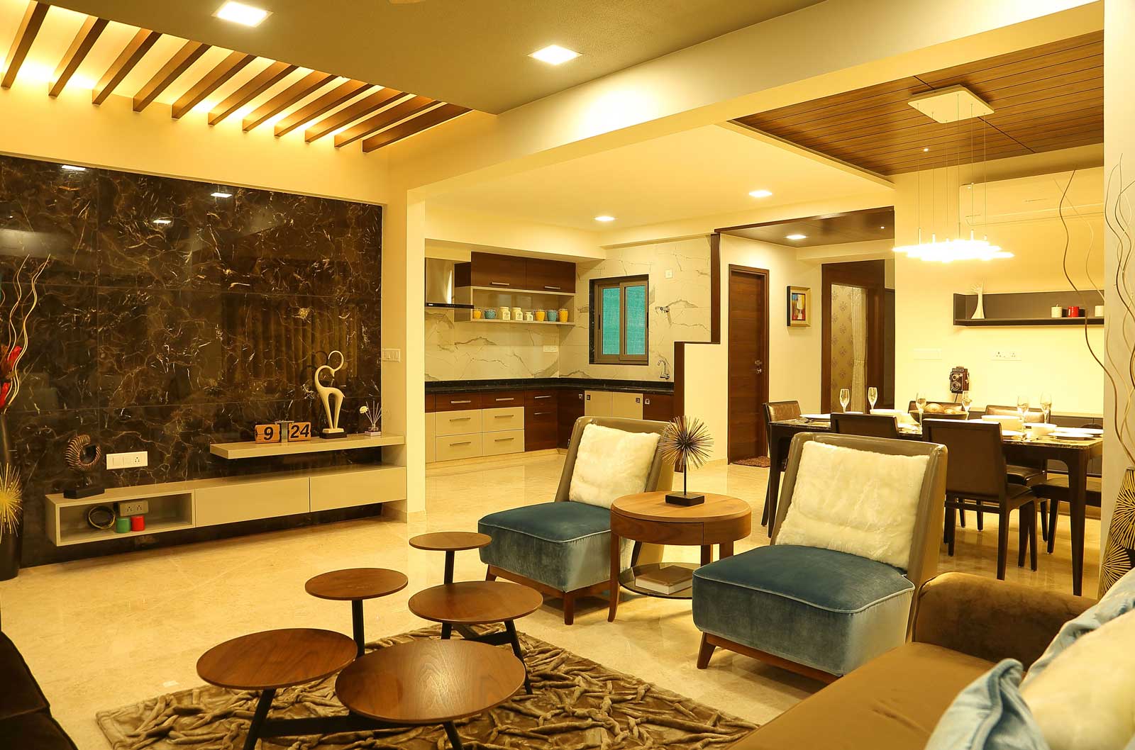 - Italian Marble / Vitrified Slab flooring in the drawing, living, dining, kitchen and all passages.